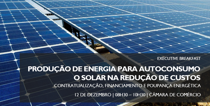 A CCIP, em parceria com a Grow Energy e a VdA, organiza um Executive Breakfast dedicado à “Produção de energia para o autoconsumo – o solar na redução de custos”, no dia 12 de Dezembro (08h30 – 10h30), que conta com a participação de três especialistas que irão abordar aspectos relevantes sobre esta temática, tais como, o enquadramento legal na rentabilização de um recurso abundante e subaproveitado, as perspectivas de evolução do mercado de energia e a apresentação de um modelo de investimento sem alocação de recursos internos ou endividamento.